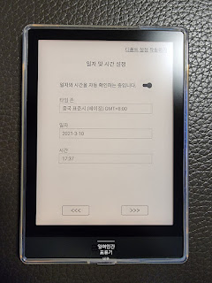 날짜와 시간 설정은 중국에서 만든 기기답게(?) 기본이 베이징이었다.네트워크를 연결할 때까지는 정상적인 시간이 없기 때문에, 대개 한국에 세팅한 후 다음 클릭